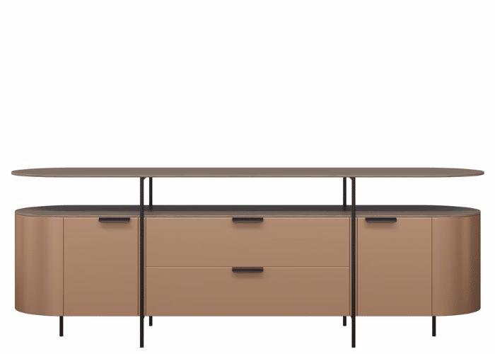 The Capri Credenza showcases an exquisite curved end storage unit, designed with a lower height to optimize space utilization. The uplifted top adds a touch of elegance, while the welded features ensure durability and structural integrity. Features • Curved Ends • 2 Doors and 2 Standard Drawers with Cove Handles • Welded Frame • Uplifted Top • Round Tube Black Powdercoated 19mm Legs • Internals Black • Dimension (mm): 2400W x 450D x 800H • Made to order Lead time: 25 business days • Proudly Designed and Made in Australia • Custom size available P.O.A • Warranty: 5 Years • $70 extra each to add door lock • Colour Shown: Copper Leaf & Prime Oak • 55 colours to choose from, refer to the colour swatch • Flatpack, assembly required